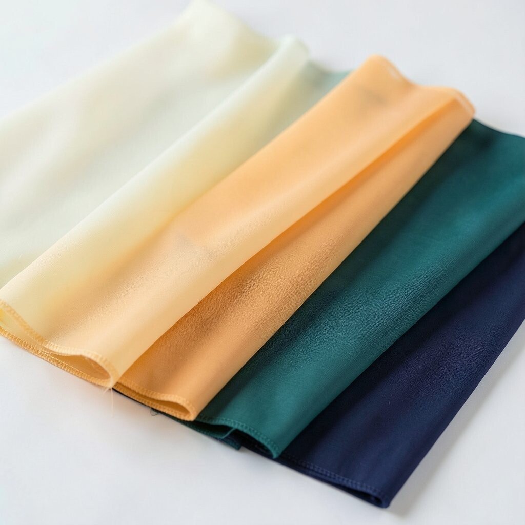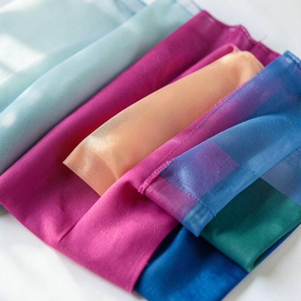 Organza is sheer, crisp, and a little stiff, with a delicate shine that catches the eye. It looks light and fancy, yet it holds shape better than many other sheer fabrics.