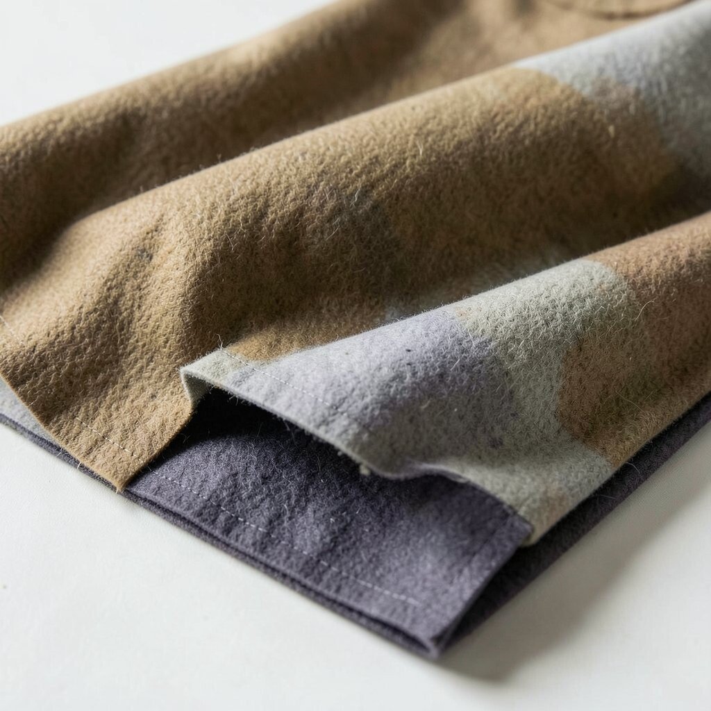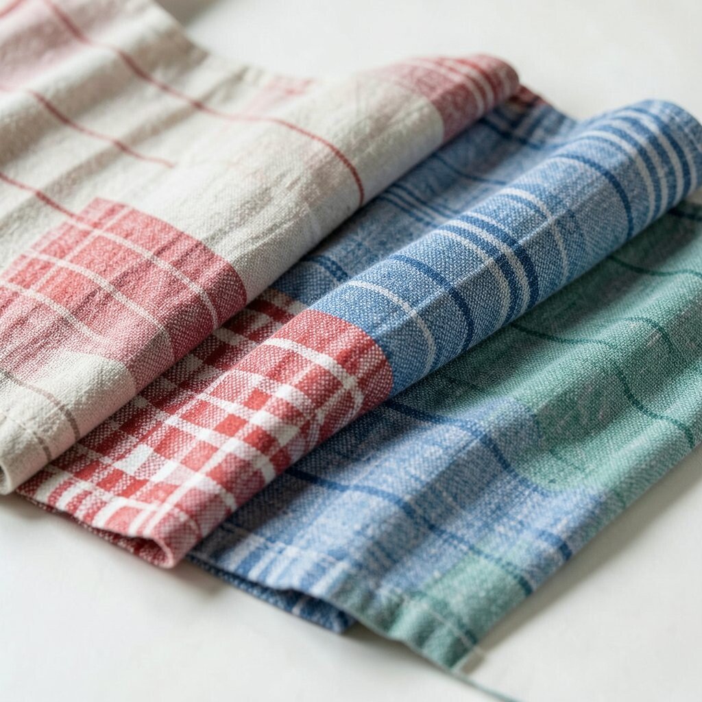 Flannel has a brushed surface that feels warm and cozy. It often comes in soft checks, plaid patterns, or solid colors with a homey look.