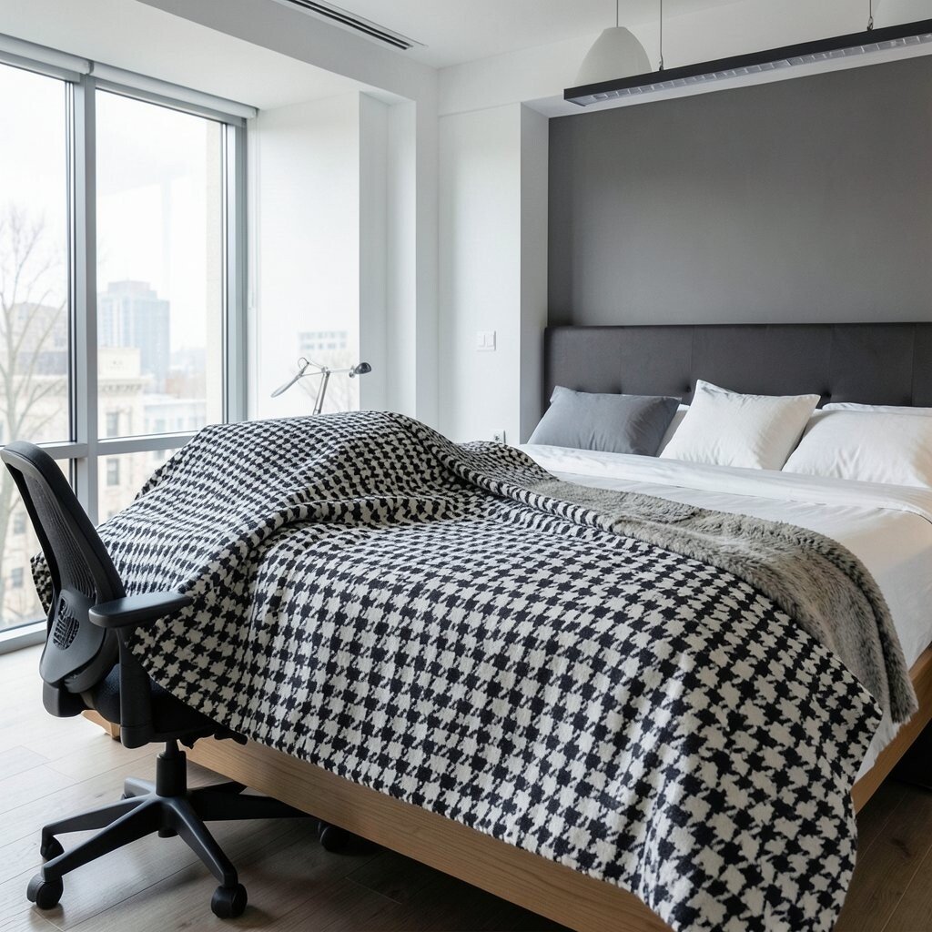Houndstooth fabric has a sharp pattern that feels classic and confident. It gives office clothes a strong visual rhythm that stands out in a neat way.