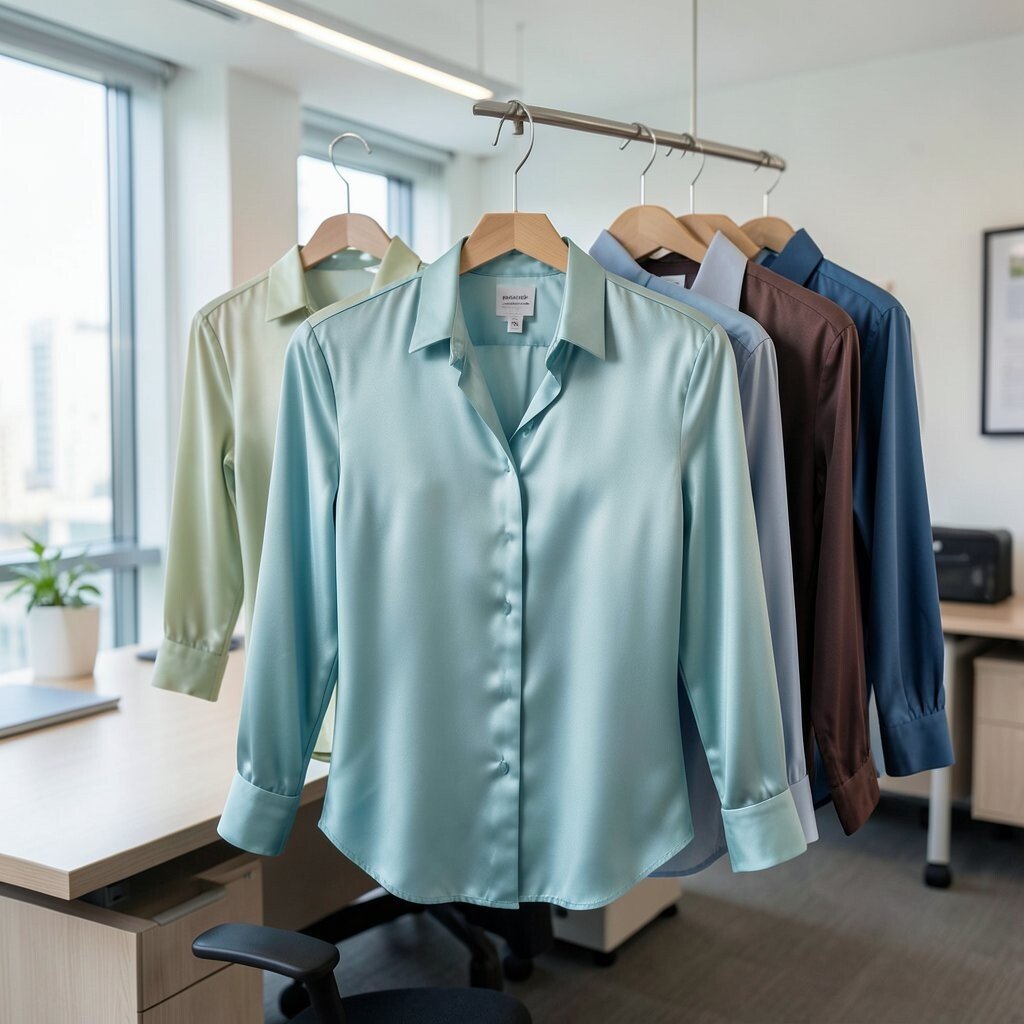 Silk blouses bring a gentle glow that catches the eye without shouting for attention. They feel smooth and airy, which makes them pleasant for long office hours.
