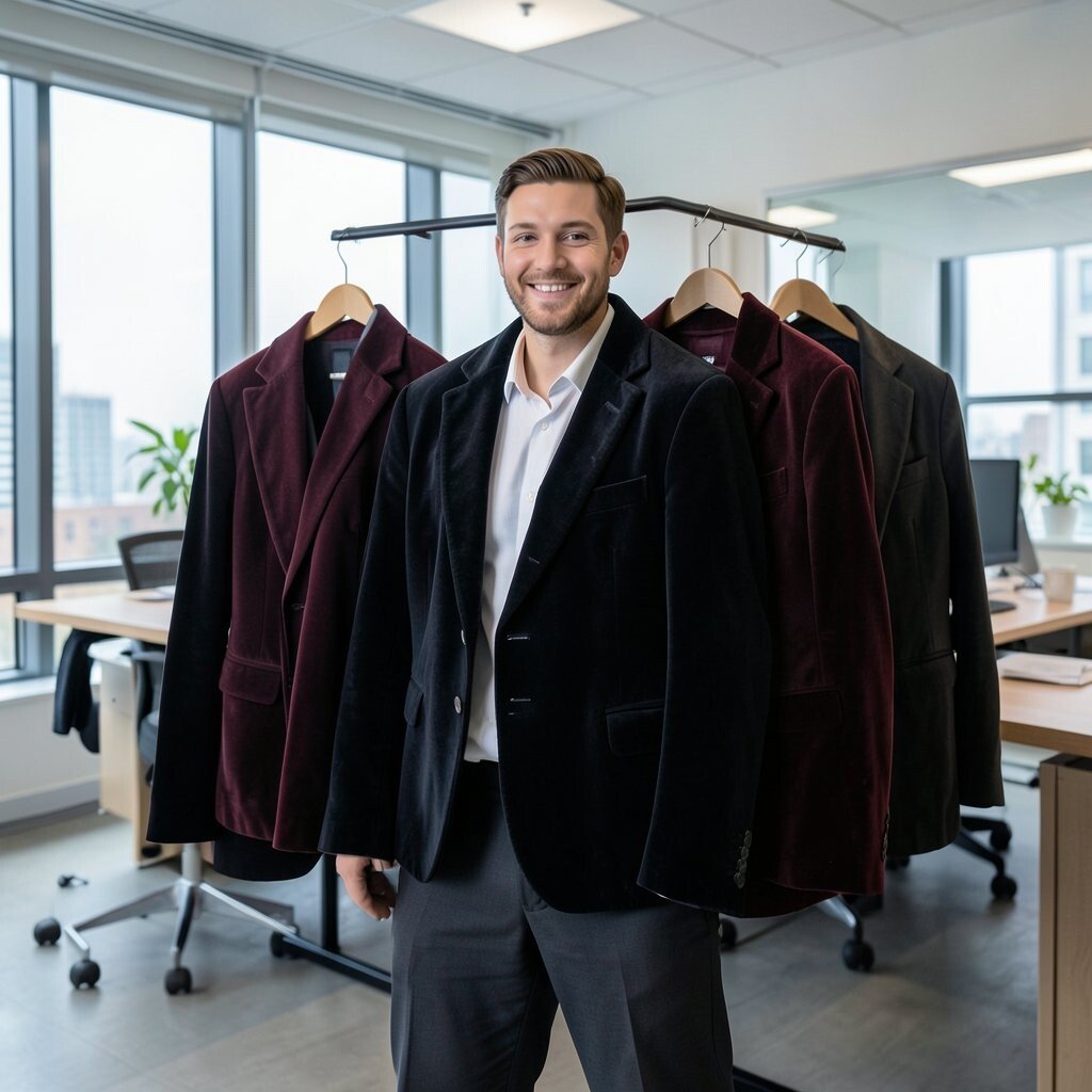 Velvet jackets bring deep color and a soft, rich surface that stands out. They can make even a simple shirt and pants look special.