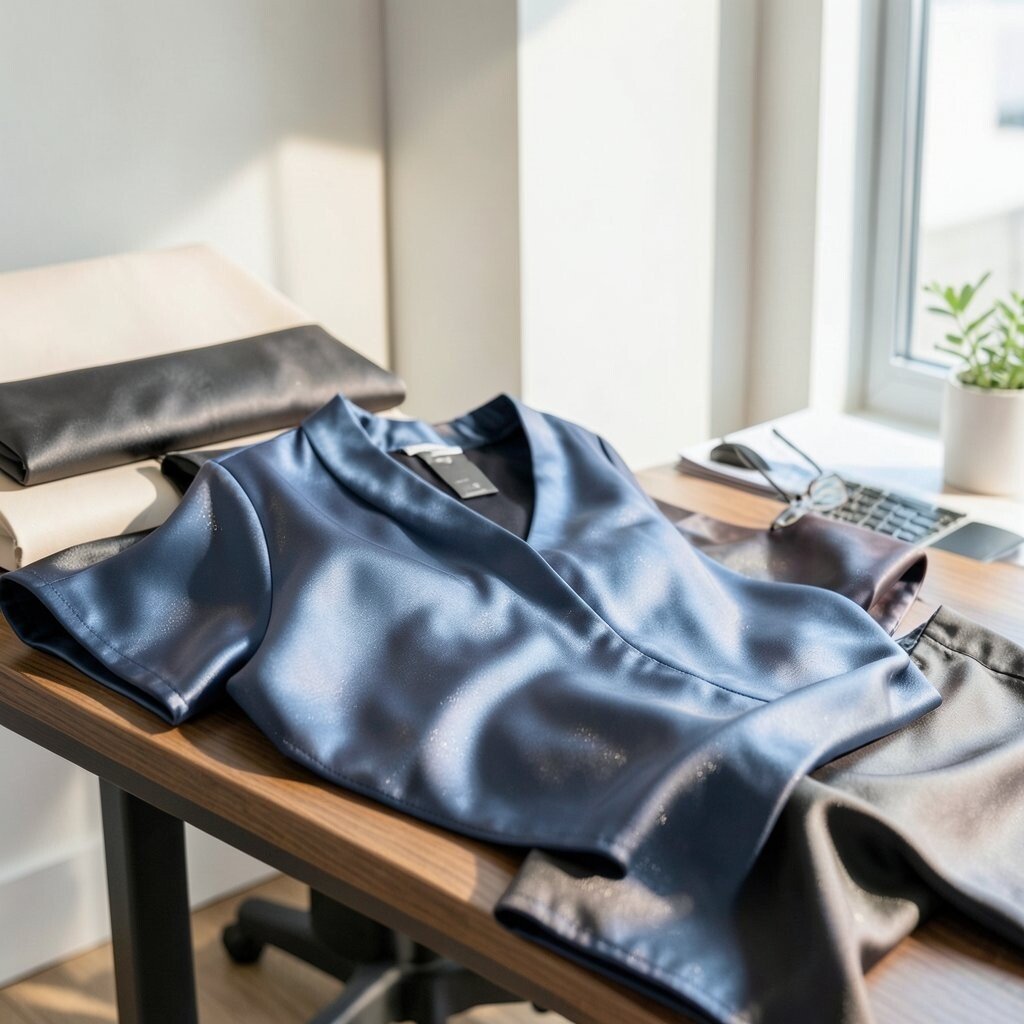 Because satin reflects light, it can make colors look richer and more alive. If you want a lower-cost version, satin blends can give the same feel with easier care. A draped neckline or tiny button detail can make the top feel special.