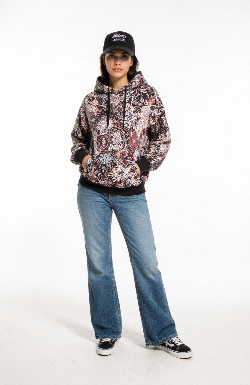 The hoodie’s batik pattern adds a fun twist to the usual sporty attire. Add some cool sneakers and a baseball cap.