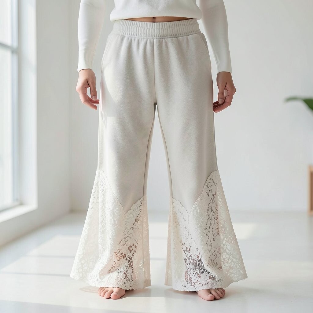 Lace flared sweatpants bring romance and elegance to casual wear. The delicate lace adds a soft, feminine touch.