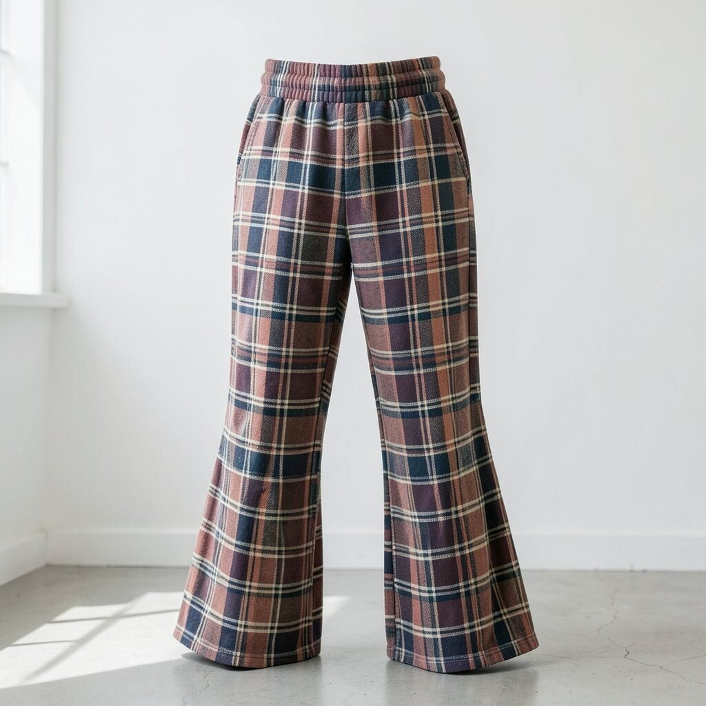 Plaid flared sweatpants offer a touch of classic style. They are perfect for a preppy, timeless look.