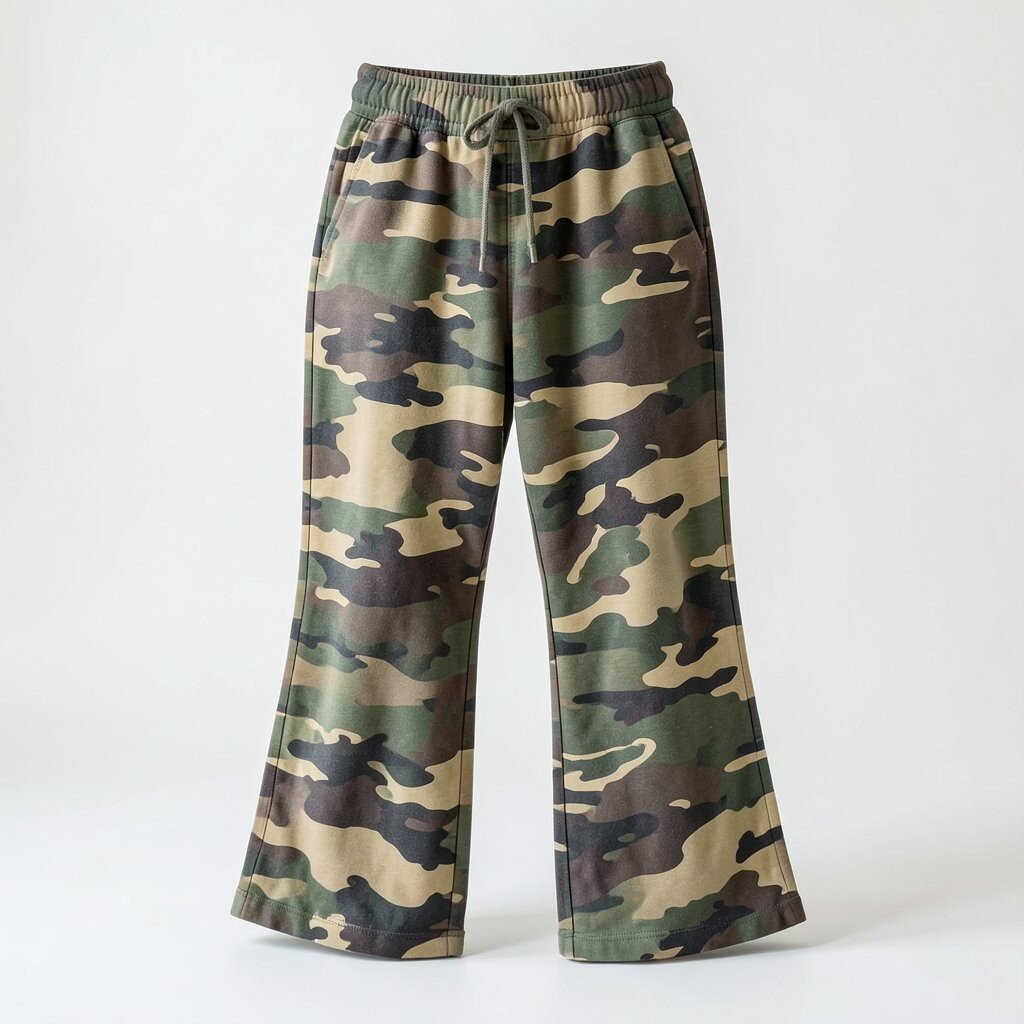 Camo flared sweatpants offer a rugged, adventurous vibe. They’re perfect for those who love the outdoors.