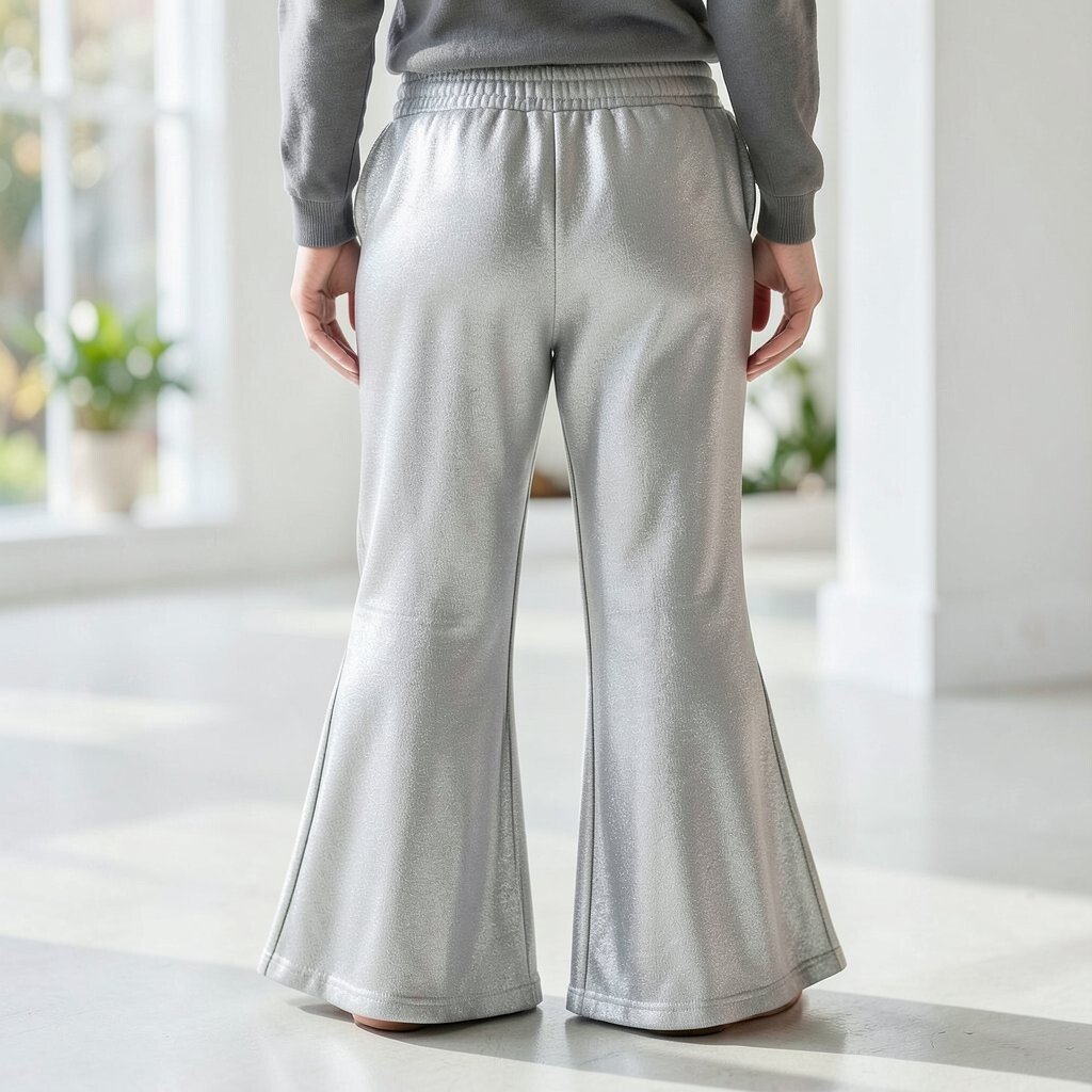 Metallic flared sweatpants are for those who love a bit of sparkle. They shine in the sunlight and create a dazzling look.