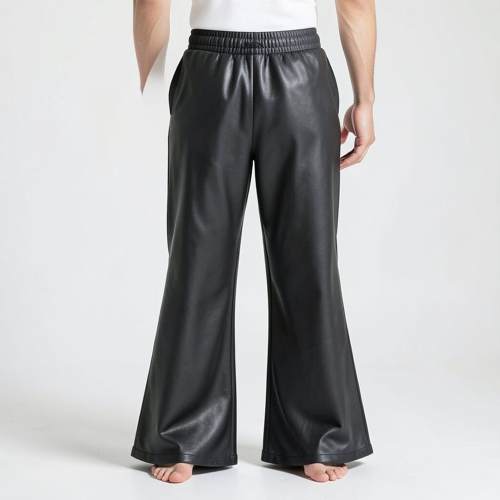 Faux leather flared sweatpants offer an edgy, modern style. They are perfect for a bold, confident look.