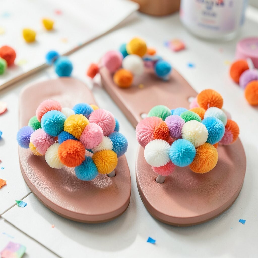 Pom-poms add a playful and fun element to your flip flops. These fluffy additions can be as colorful or as simple as you like. They’re perfect for those who love a bit of whimsy in their wardrobe.