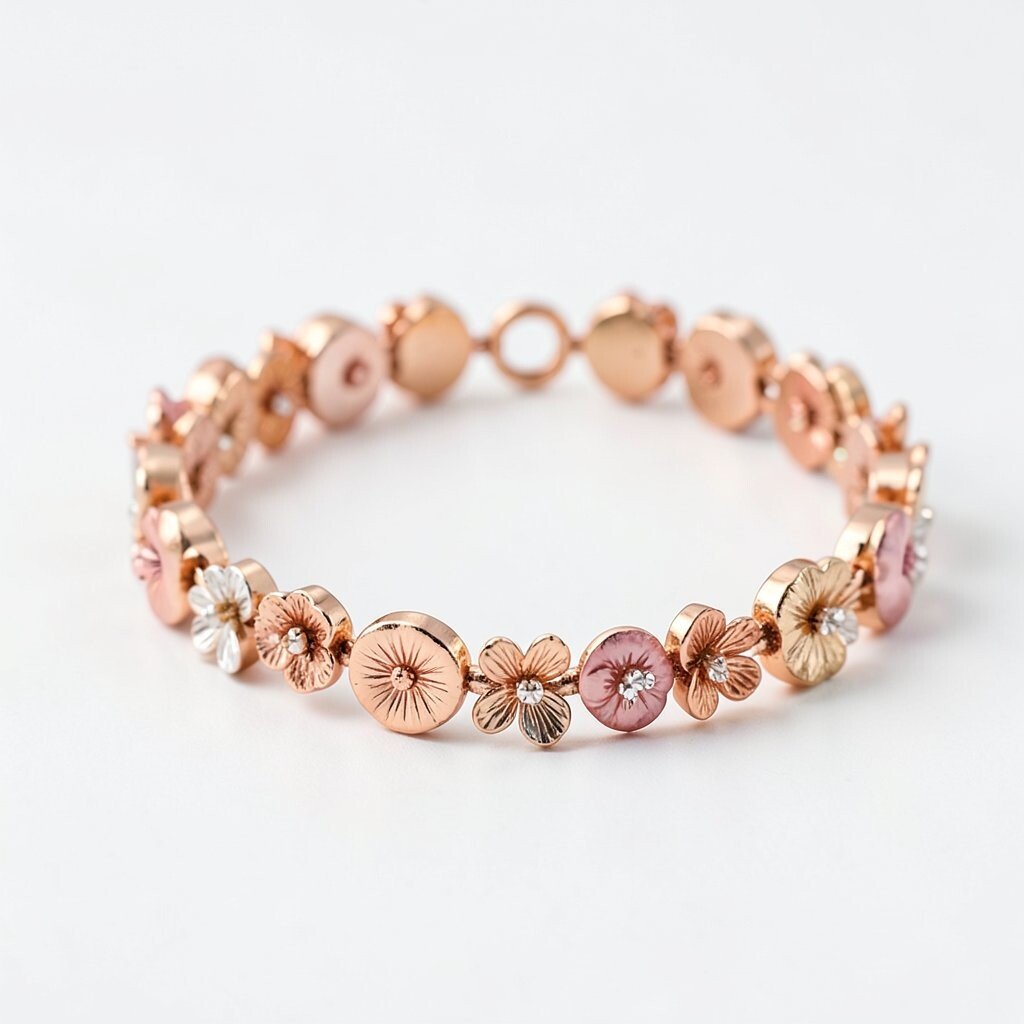 Rose gold floral bracelets have a timeless appeal. The warm metallic hue complements the delicate rose designs perfectly.