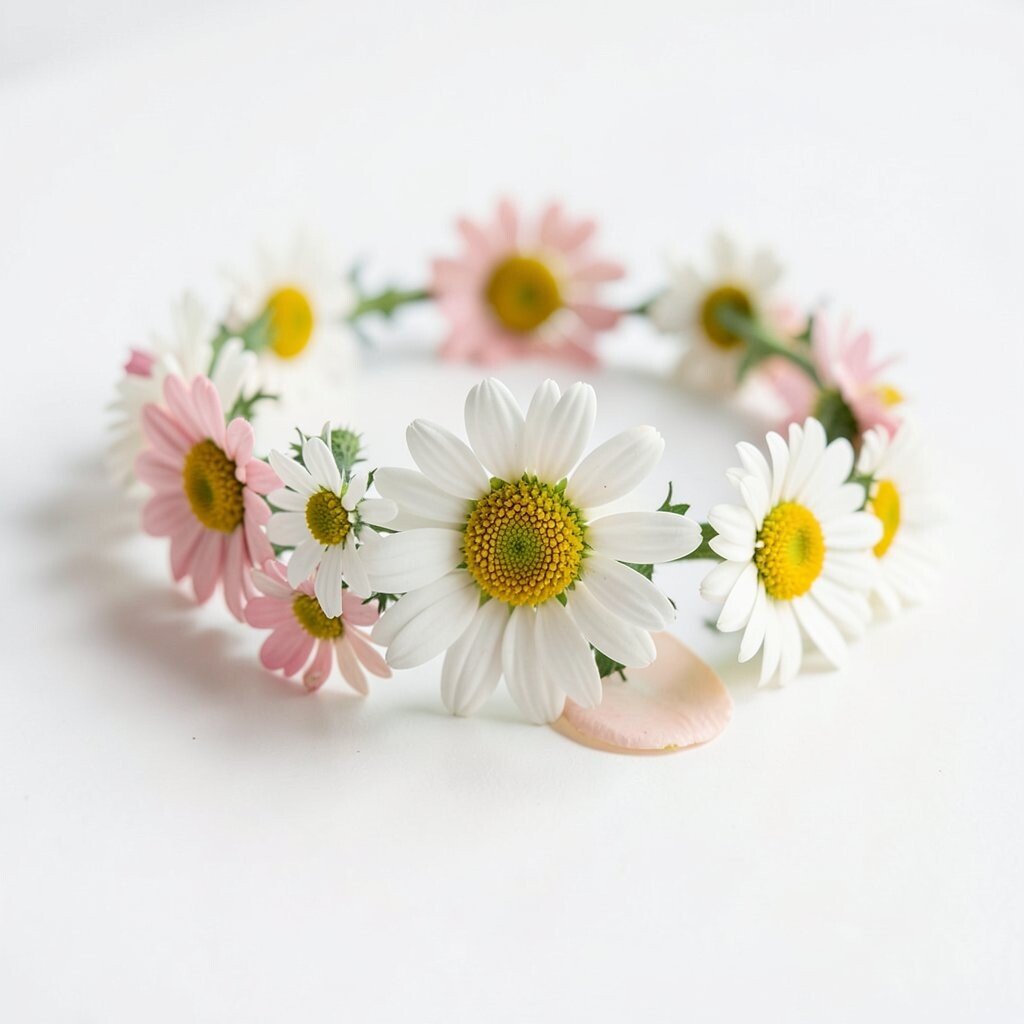 A dainty daisy chain bracelet can be a charming addition to your accessory collection. The small, white petals with yellow centers evoke a sense of nostalgia.