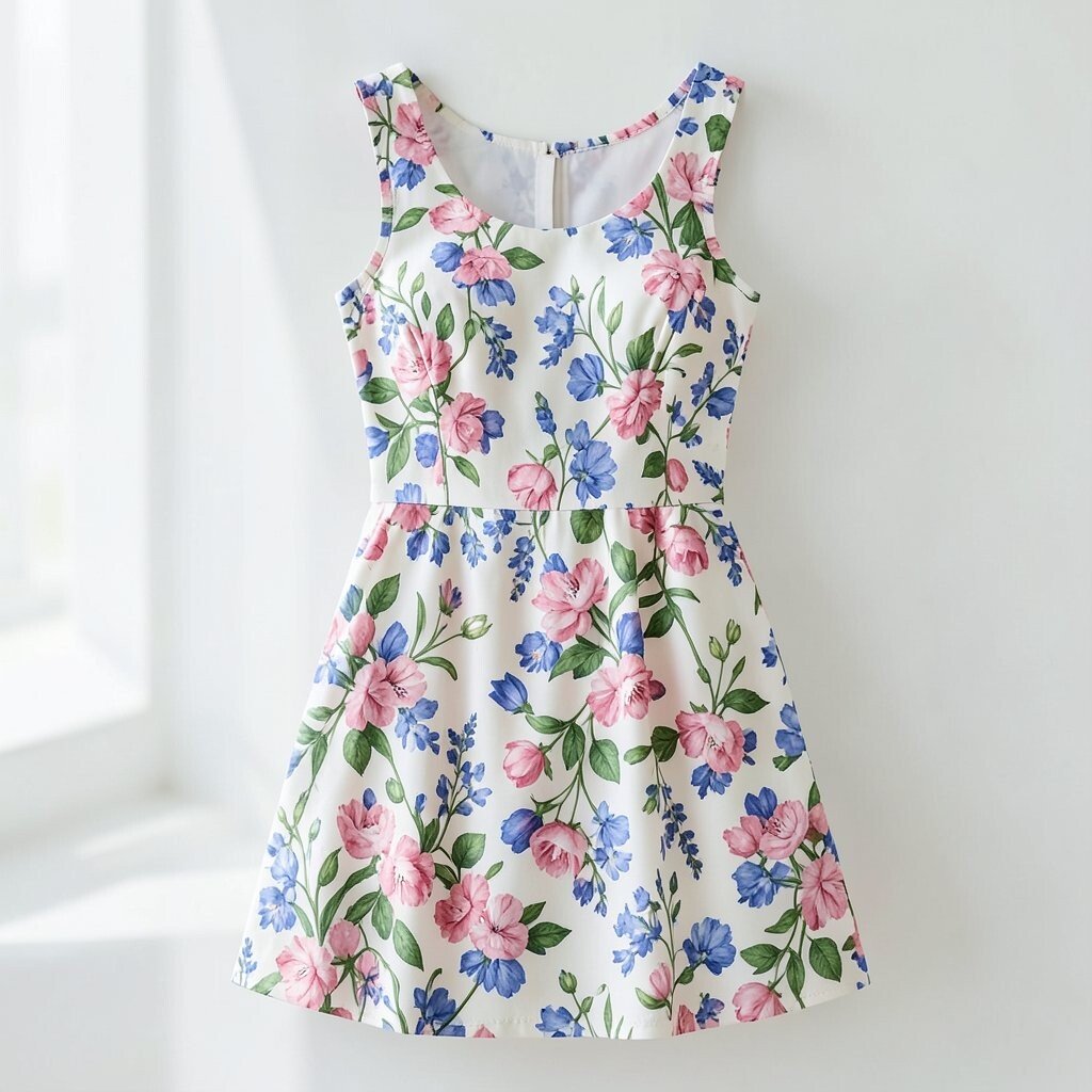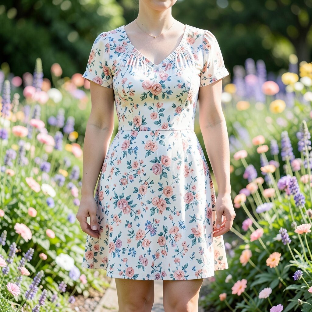 This dress is adorned with tiny sweet pea flowers in soft colors, creating a sweet and innocent look. It’s perfect for a day at the park or a casual outing.