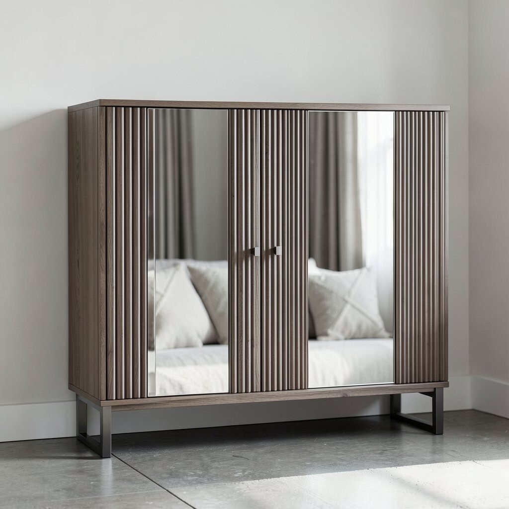 Fluted cabinets with mirrored doors add a touch of glamour to your home. The mirrors reflect light, making spaces feel larger.