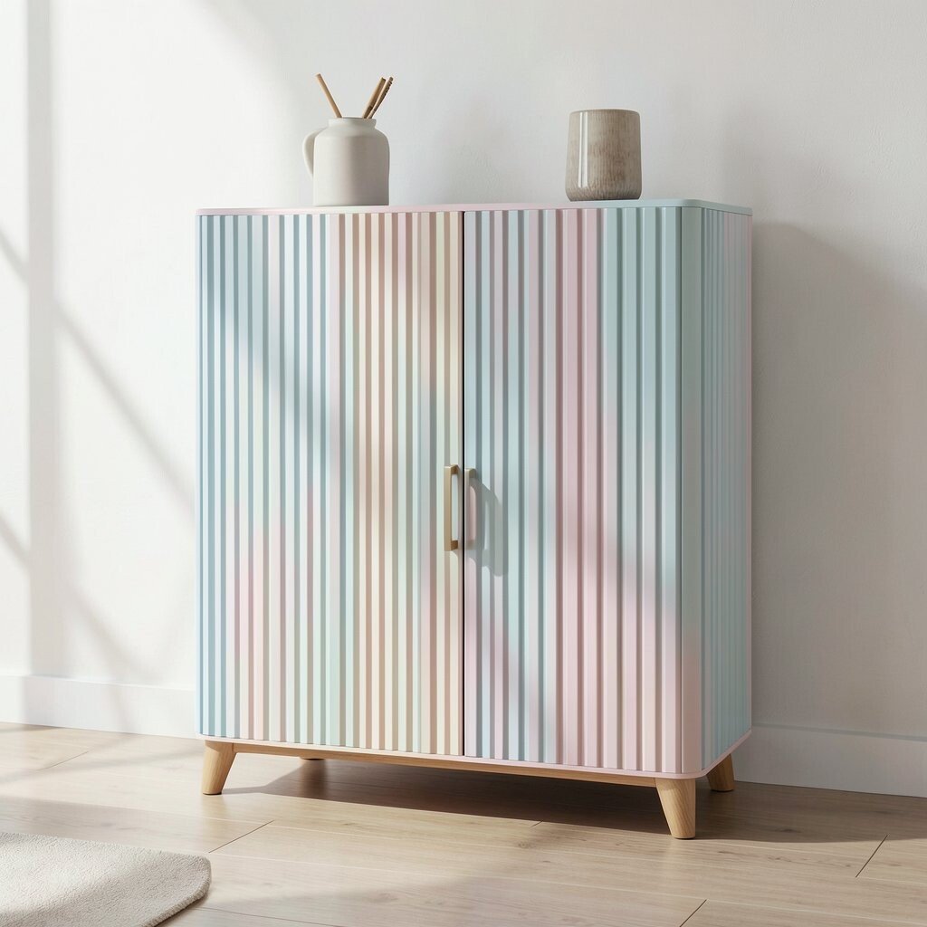 Pastel fluted cabinets bring a soft, playful touch to your decor. They’re excellent for adding a pop of color without overpowering the space.