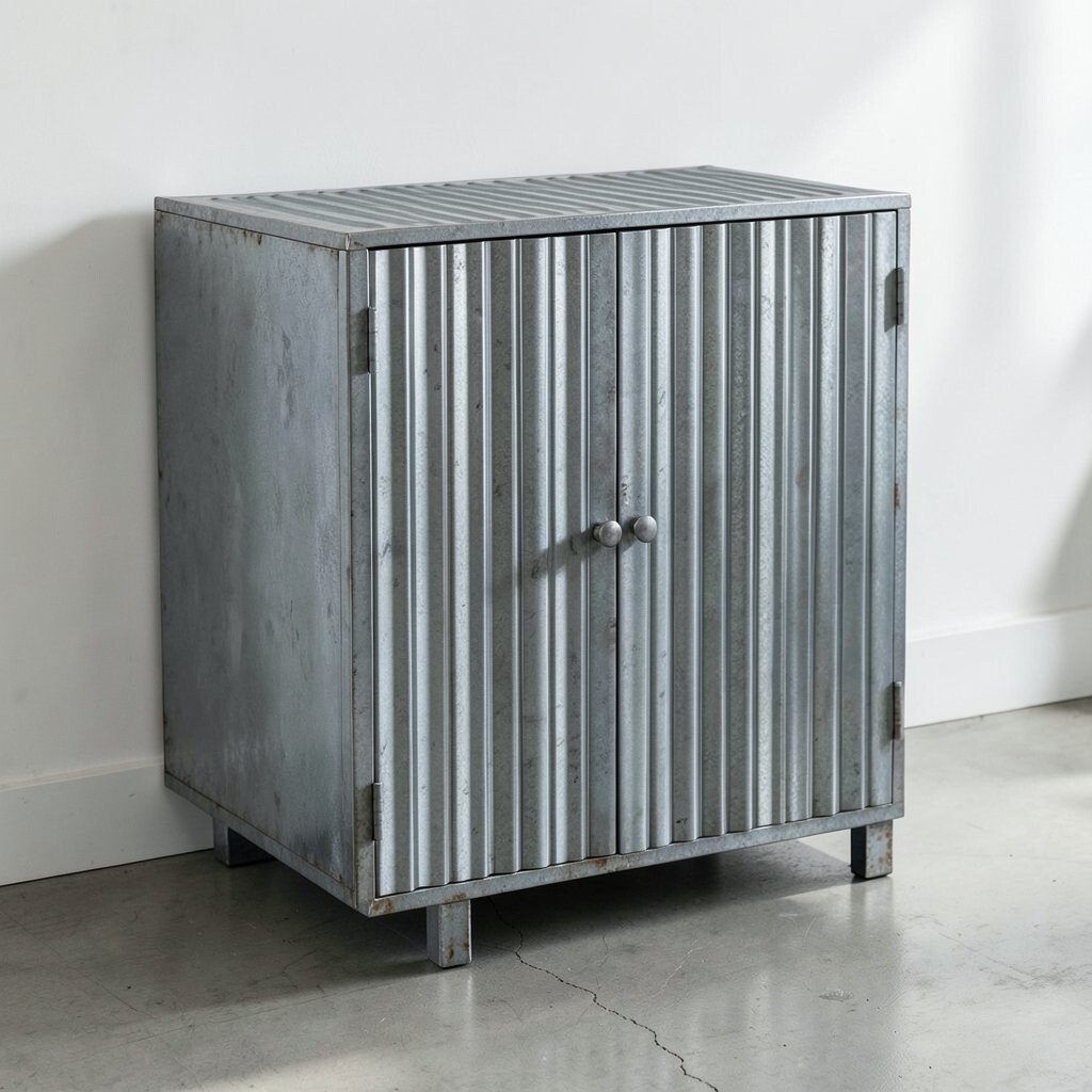 Industrial metal fluted cabinets add an edgy, urban feel to your home. Their sturdy construction makes them ideal for high-use areas.