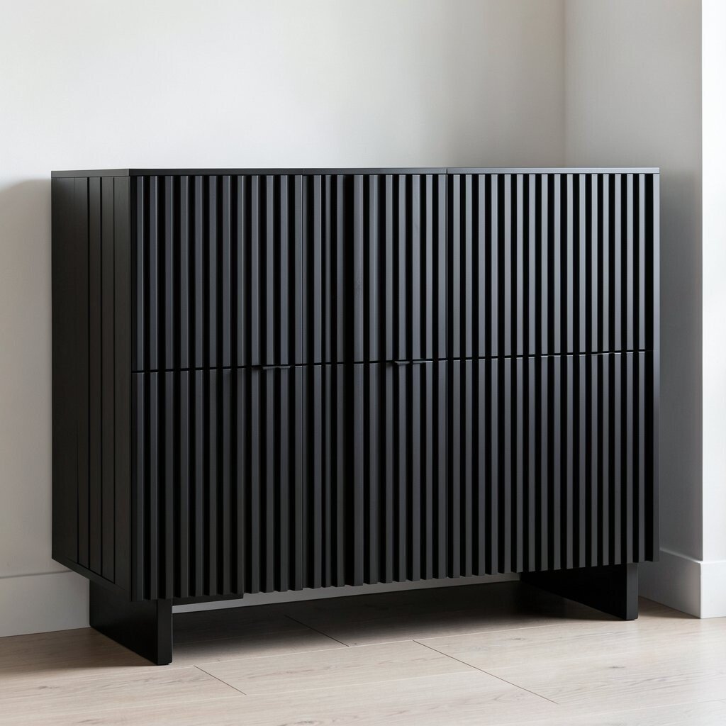 A black fluted cabinet makes a bold statement in any room. Its sleek and modern finish is perfect for contemporary spaces.