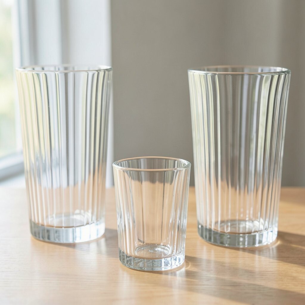 Candle holders made from fluted glass create a mesmerizing play of light and shadow. As the candle flickers, the grooves in the glass enhance the glow.