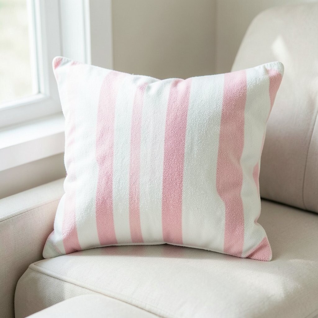 Candy stripe cushions add a playful, sweet touch to any room. They’re perfect for a fun, lively atmosphere.