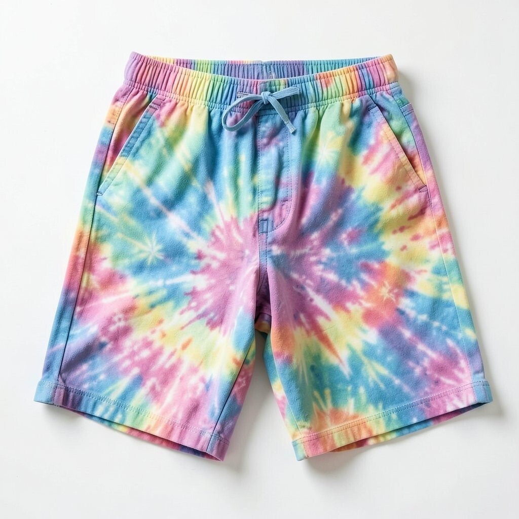 Tie-dye foldover shorts bring a splash of nostalgia and color to your summer look. Each pair is unique, with patterns that vary from subtle swirls to bold bursts.