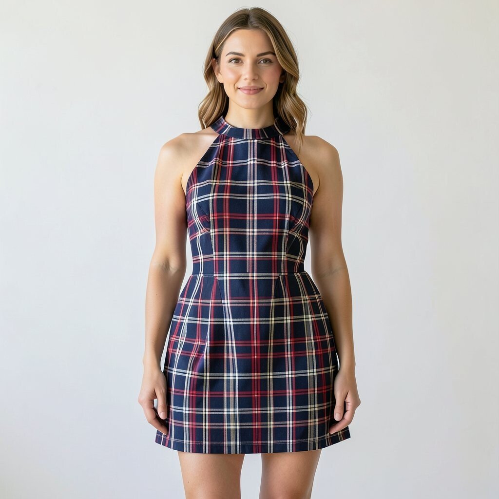 Plaid is a timeless pattern that works for all seasons. A plaid halter mini dress is both trendy and classic.