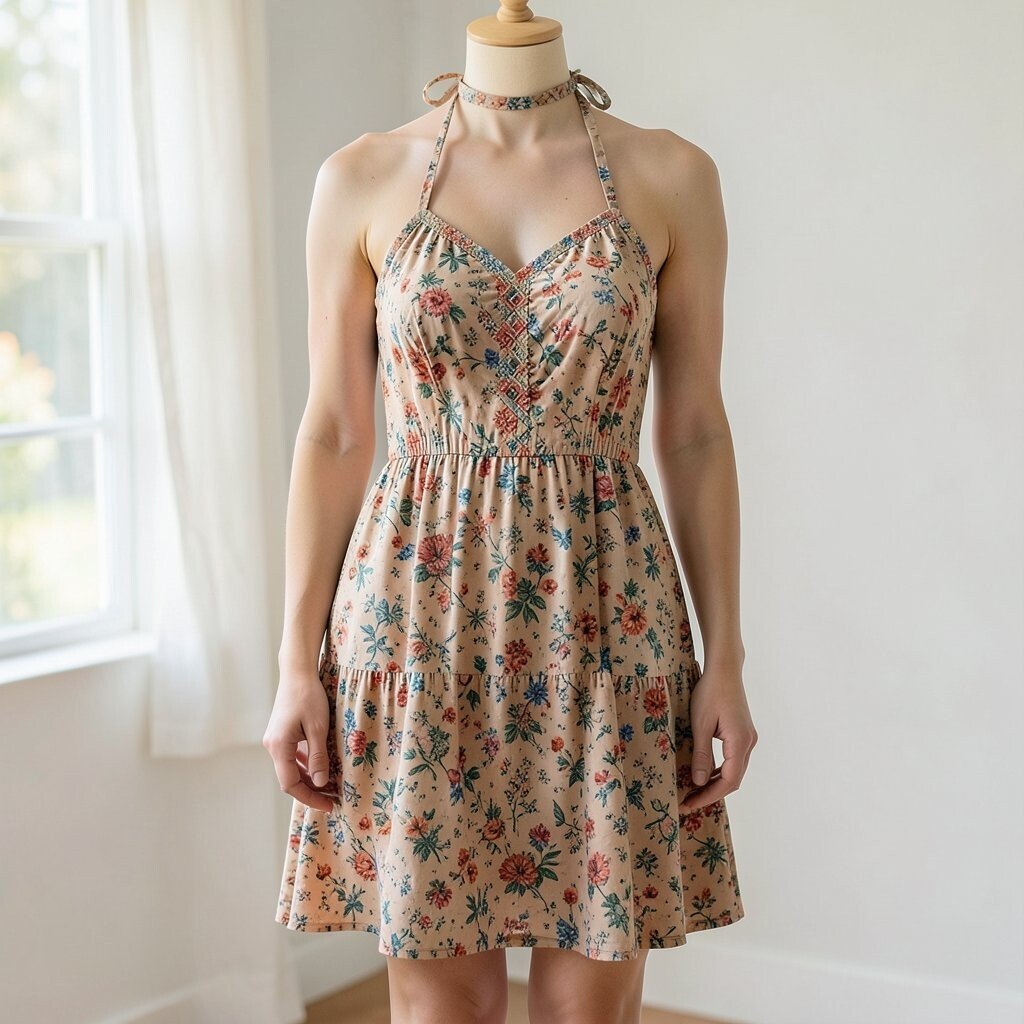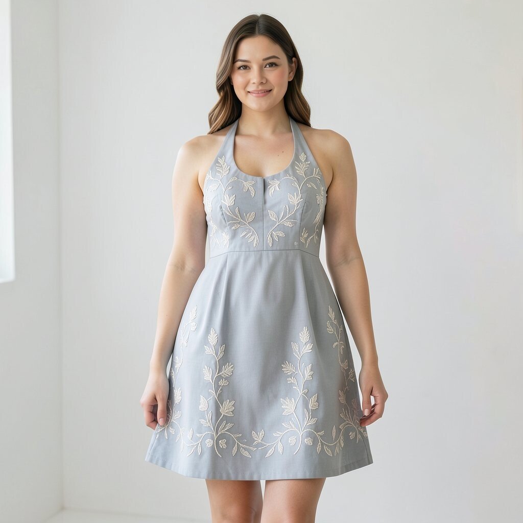 Embroidered dresses offer intricate details and craftsmanship. An embroidered halter mini dress is both unique and eye-catching.