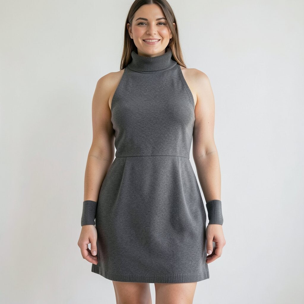 A turtleneck halter mini dress combines warmth with style. It’s perfect for cooler days when you still want to wear a mini dress.
