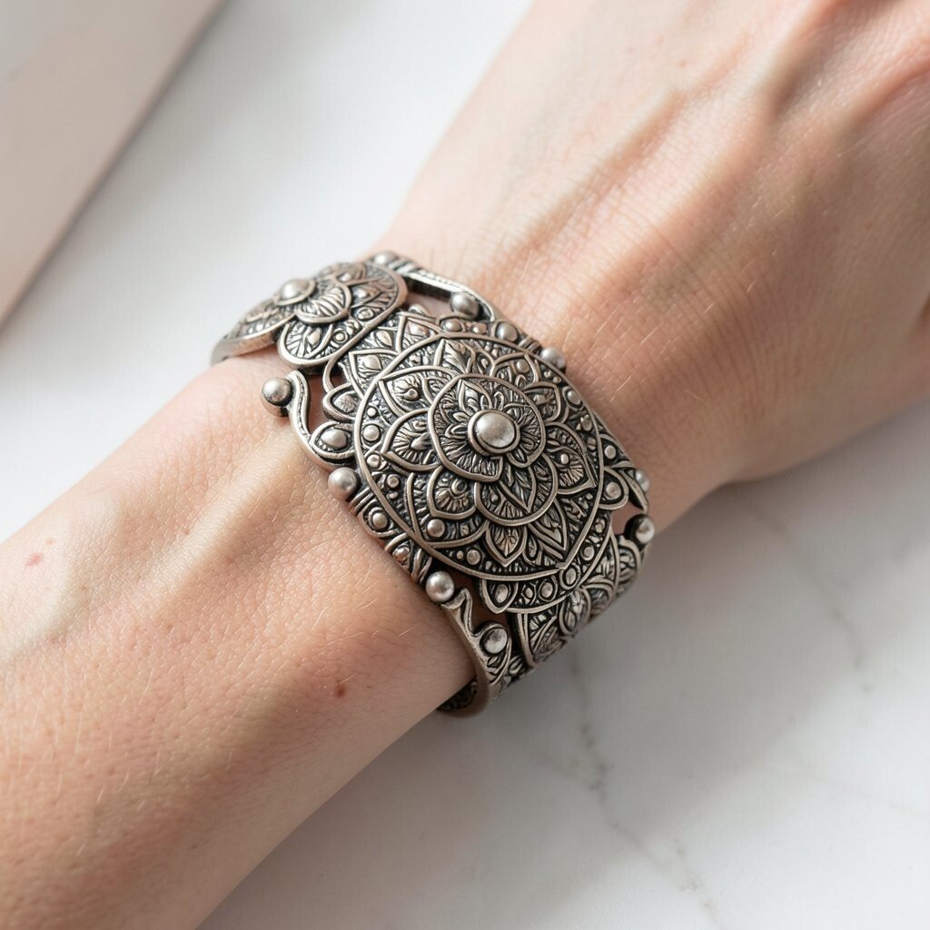 Look for intricate patterns that remind you of delicate lacework. This design works wonderfully for weddings or romantic outings. It’s like wearing a piece of history on your hand.