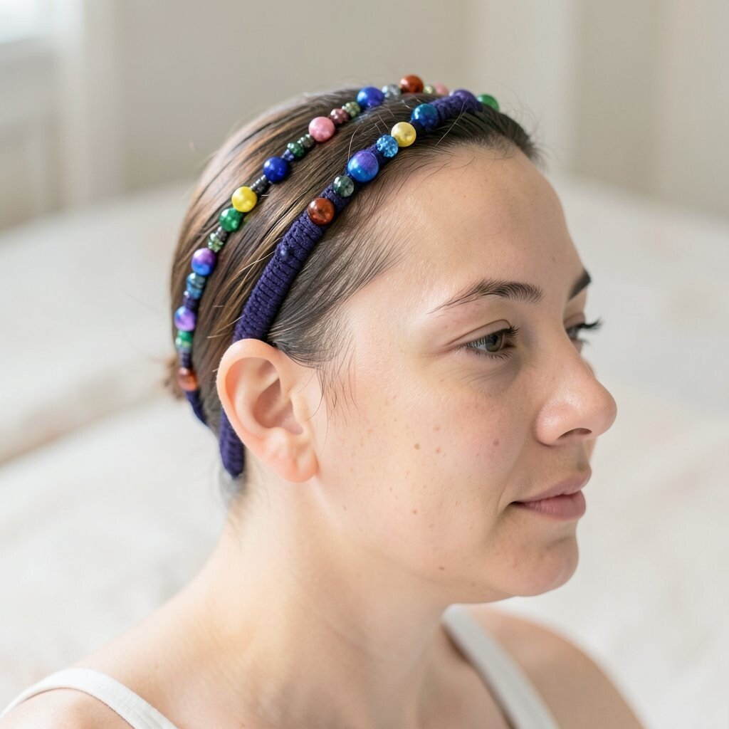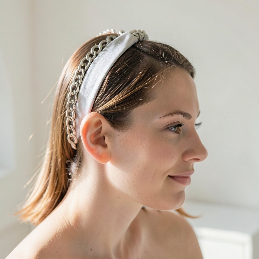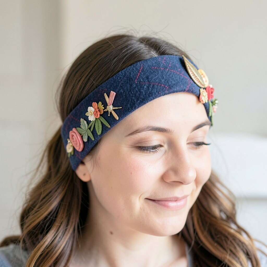 Start with a plain band and add a few small charms that match your style. Keep the pieces balanced so the headband still feels easy to wear.