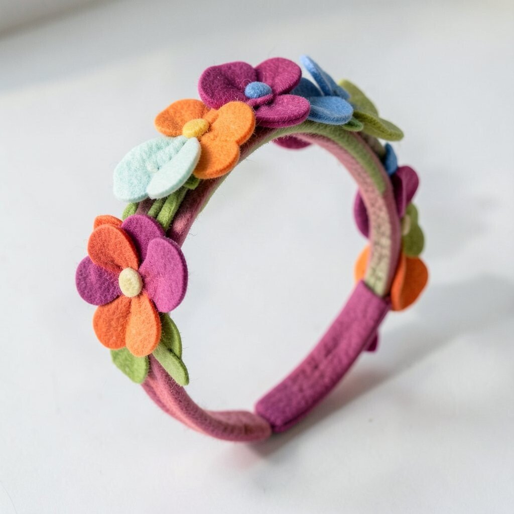 Felt flowers make a headband look cheerful and sweet. The petals stay in shape, so the flowers keep their cute look all day.