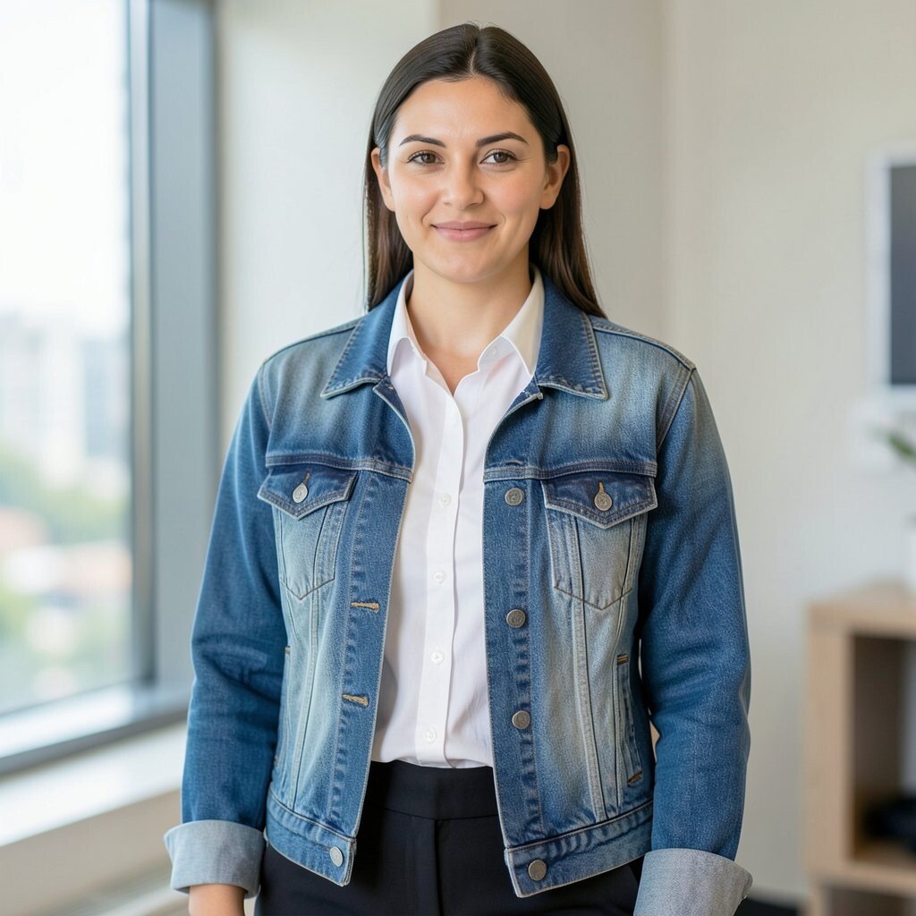 A denim jacket offers a casual touch. It’s perfect for dressing down a white shirt. Denim is versatile and timeless.