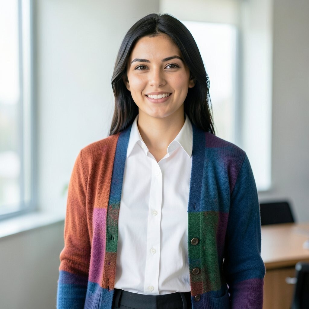 A colorful cardigan can add warmth and style. Choose a bright color to contrast with the white shirt. This is perfect for layering during transitional seasons.