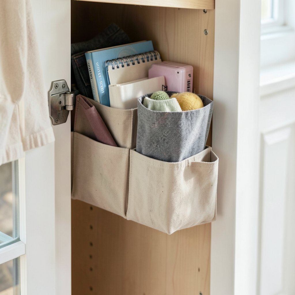 Maximize closet space with a door pocket organizer. Store scarves, belts, or jewelry in the pockets. It’s a clever way to keep your closet tidy.