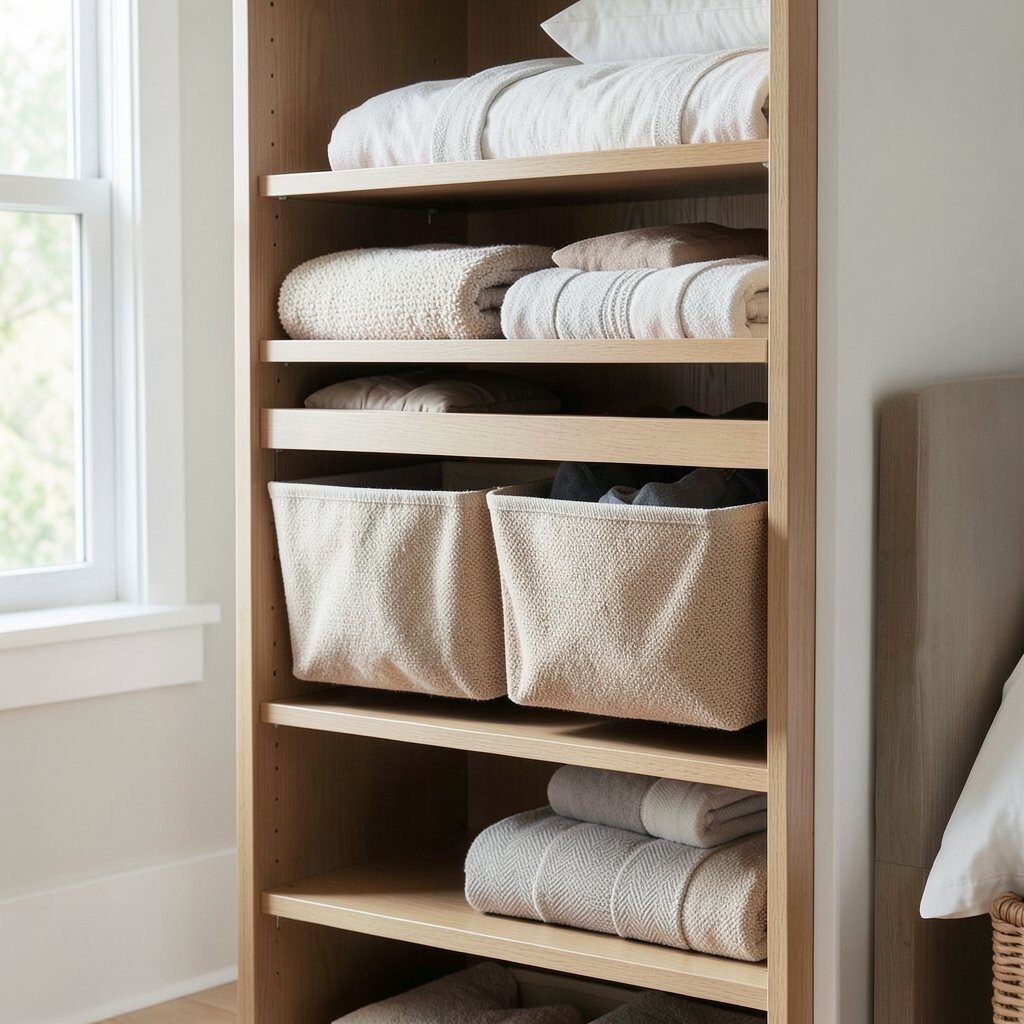 Choose a fabric that matches your closet decor. It’s an inexpensive addition that brings elegance and order.