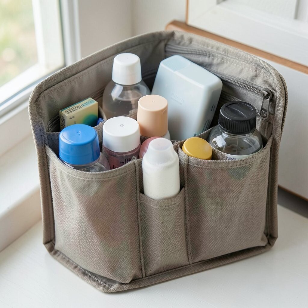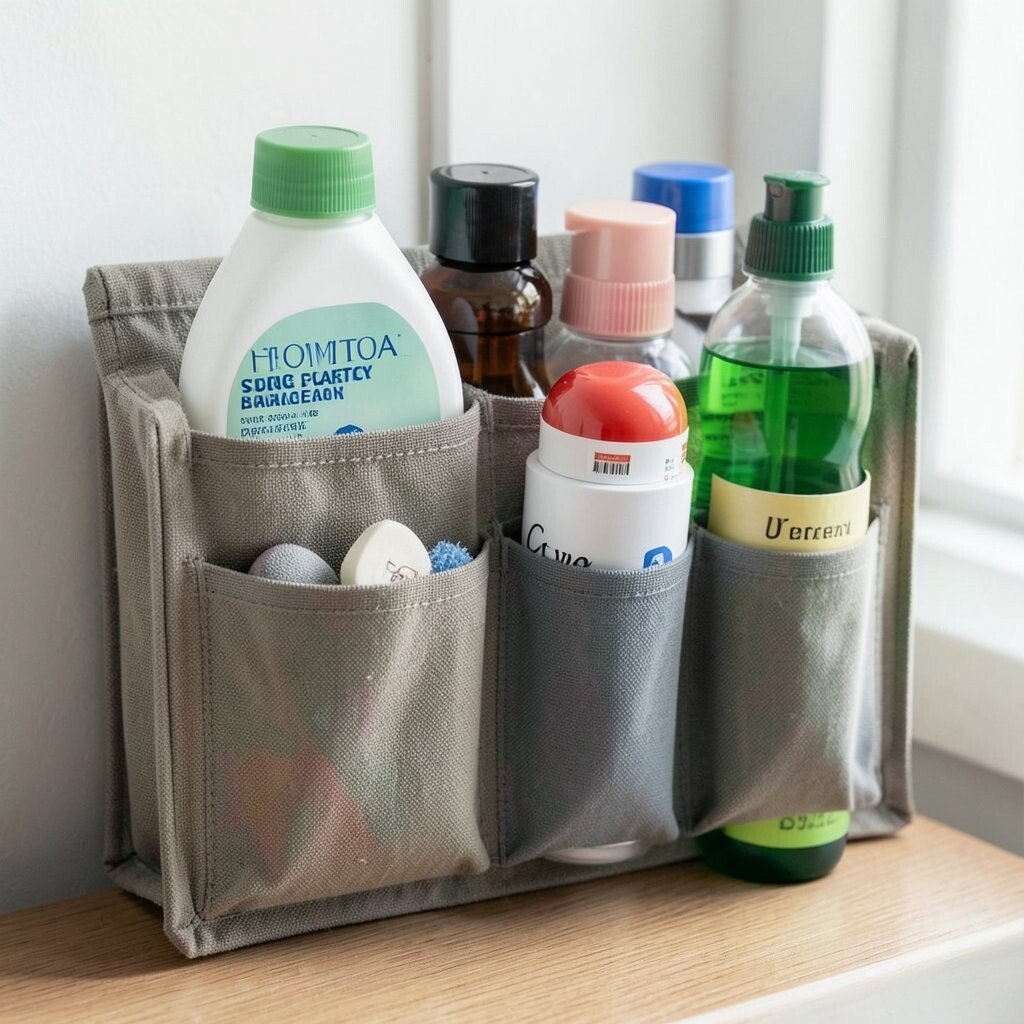 Keep your toiletries organized on trips with a pocket organizer. Store toothbrushes, toothpaste, and travel-sized bottles in the pockets. The compact design fits easily in luggage.