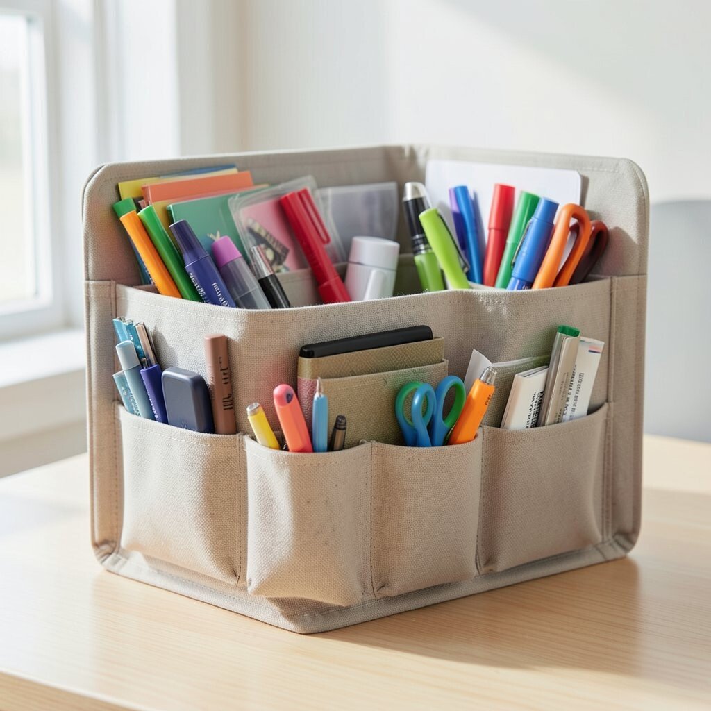 Keep your craft room tidy with a pocket organizer. Store scissors, glue, and markers in the pockets. It’s perfect for creative minds.