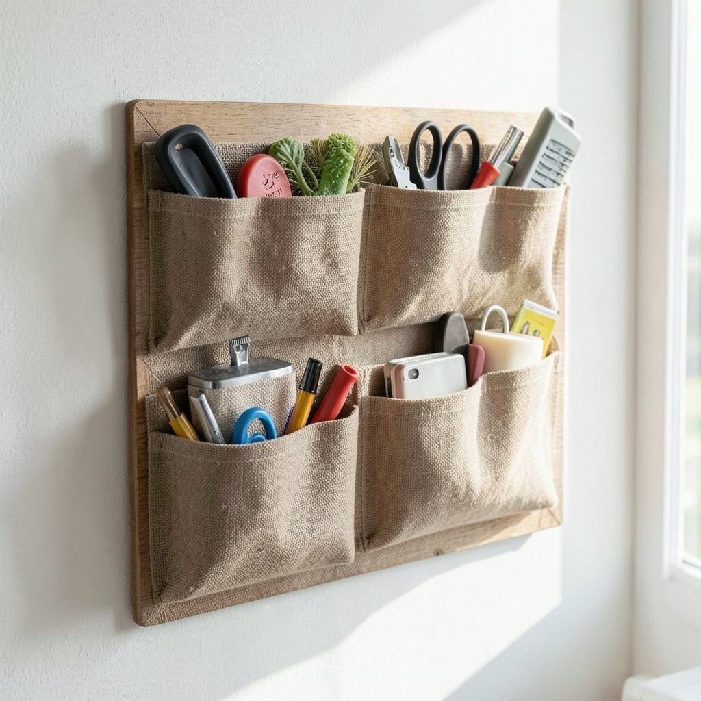 Imagine a pocket wall organizer hanging in your home office. It’s ideal for mail, keys, and even your favorite pen. The variety of pockets keeps everything organized.