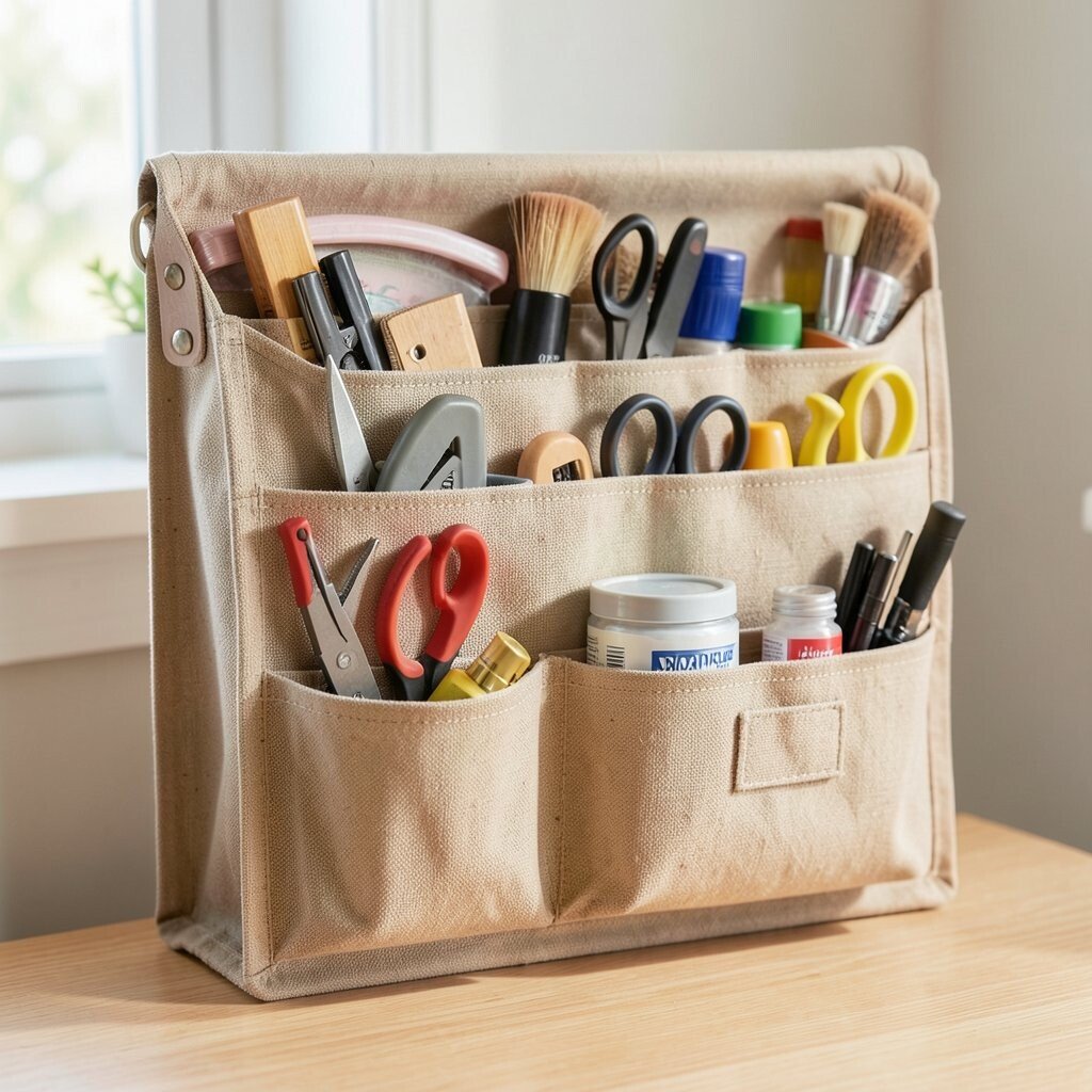 Keep your craft supplies organized with a pocket organizer. Store paints, brushes, and ribbons in the pockets. It’s perfect for creative minds.