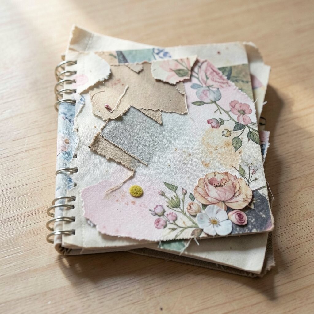 Mix fabrics with other materials like paper or lace. This adds interesting textures and depth to your book.