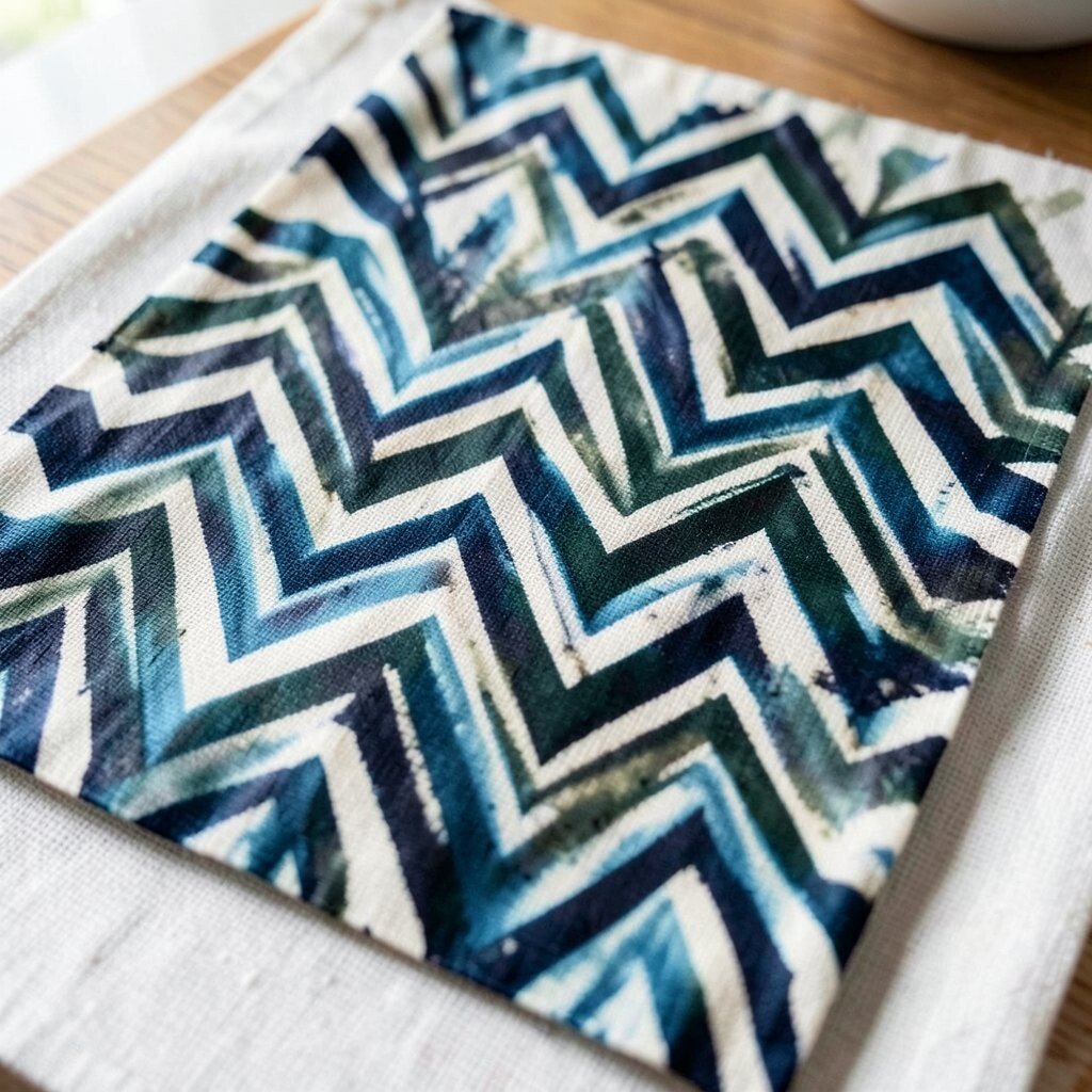 Use chevron patterns with batik wax for a modern look. Dye in bold colors for a striking design. Ideal for rugs and decorative pillows.
