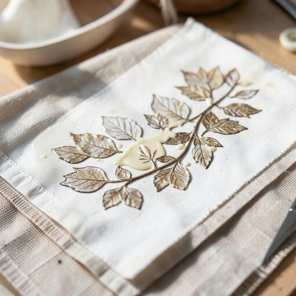 Use real leaves to apply batik wax on fabric for natural prints. The veins and textures create a delicate, earthy look. Perfect for tablecloths and curtains.