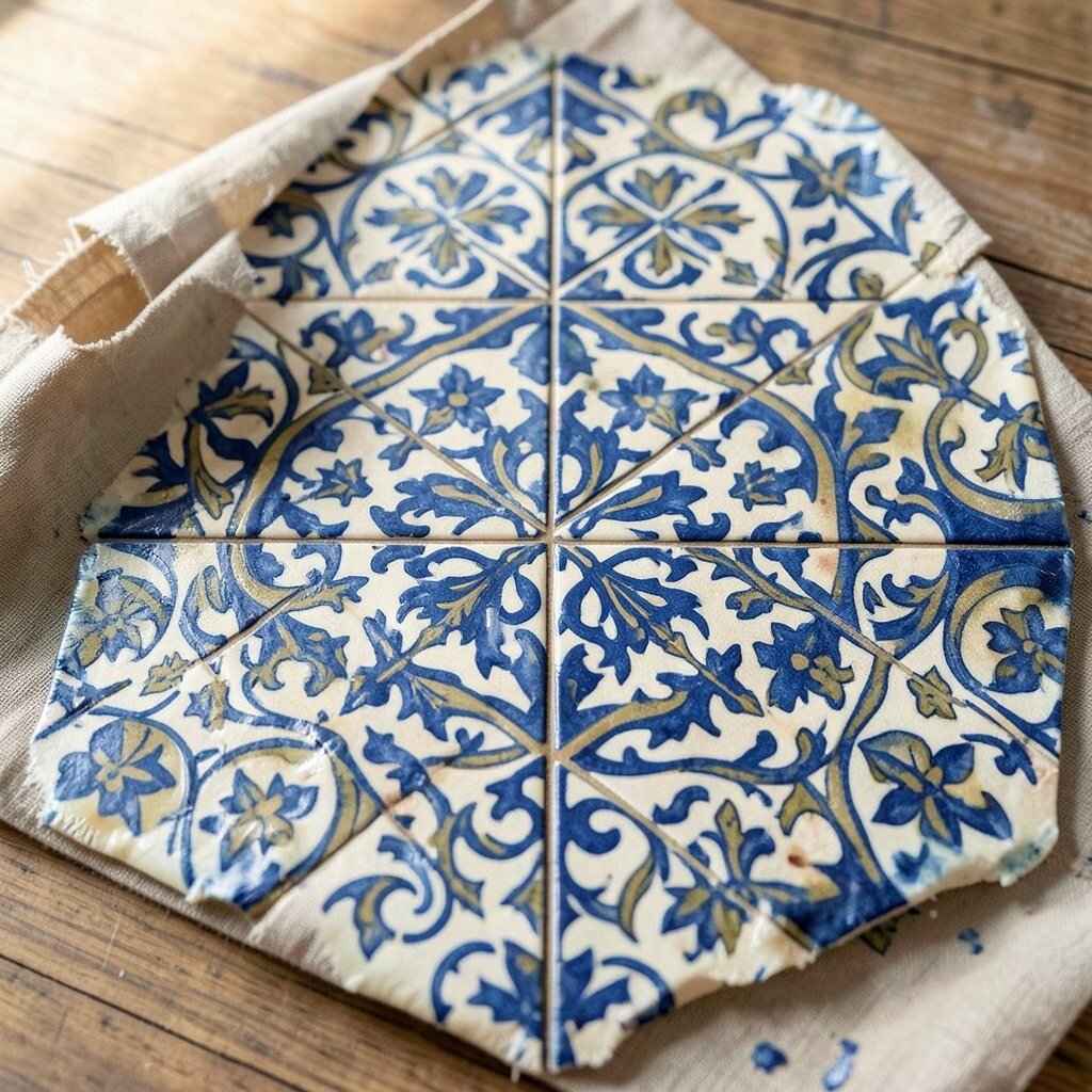 Replicate vintage tiles with batik wax for a classic look. Use earthy tones for authenticity. Ideal for kitchen decor and table settings.