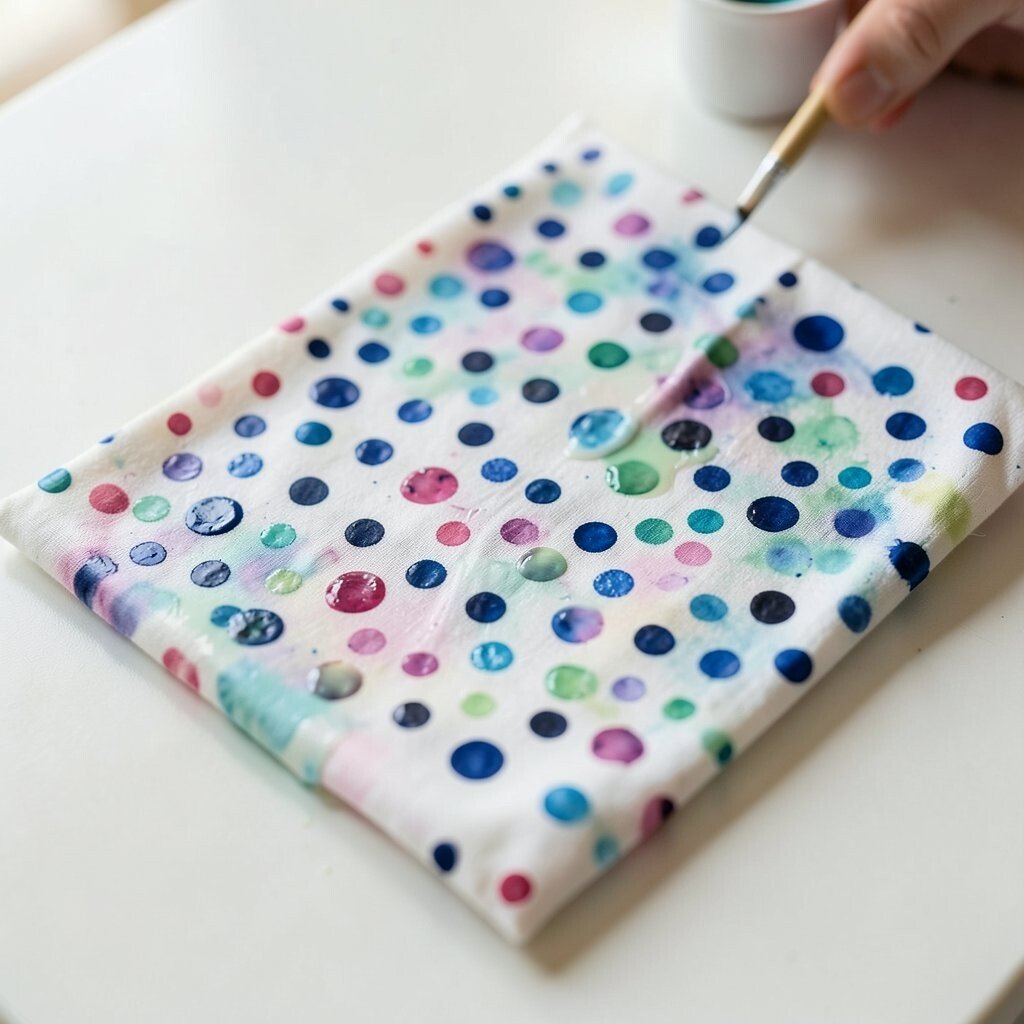 Combine dots and dashes with batik wax for a playful pattern. Use bright colors for a fun design. Great for kids’ rooms and playful spaces.
