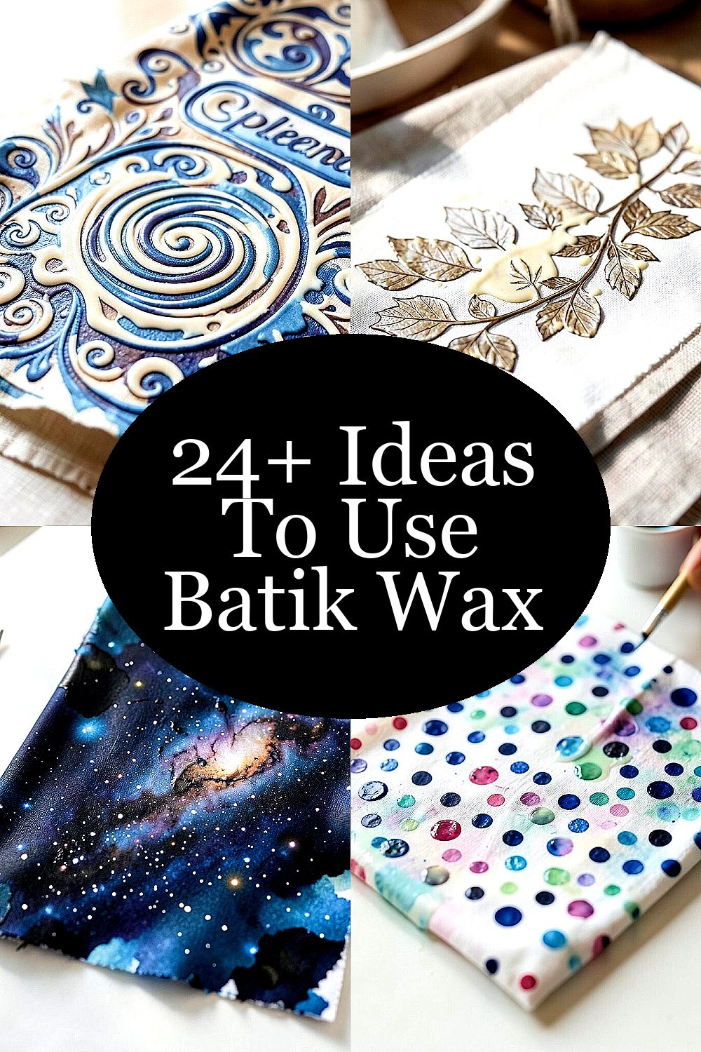 Create a galaxy on fabric with batik wax dots and swirls. Dye the fabric in deep blues and purples for a night sky feel. Use it for pillow covers or wall hangings.