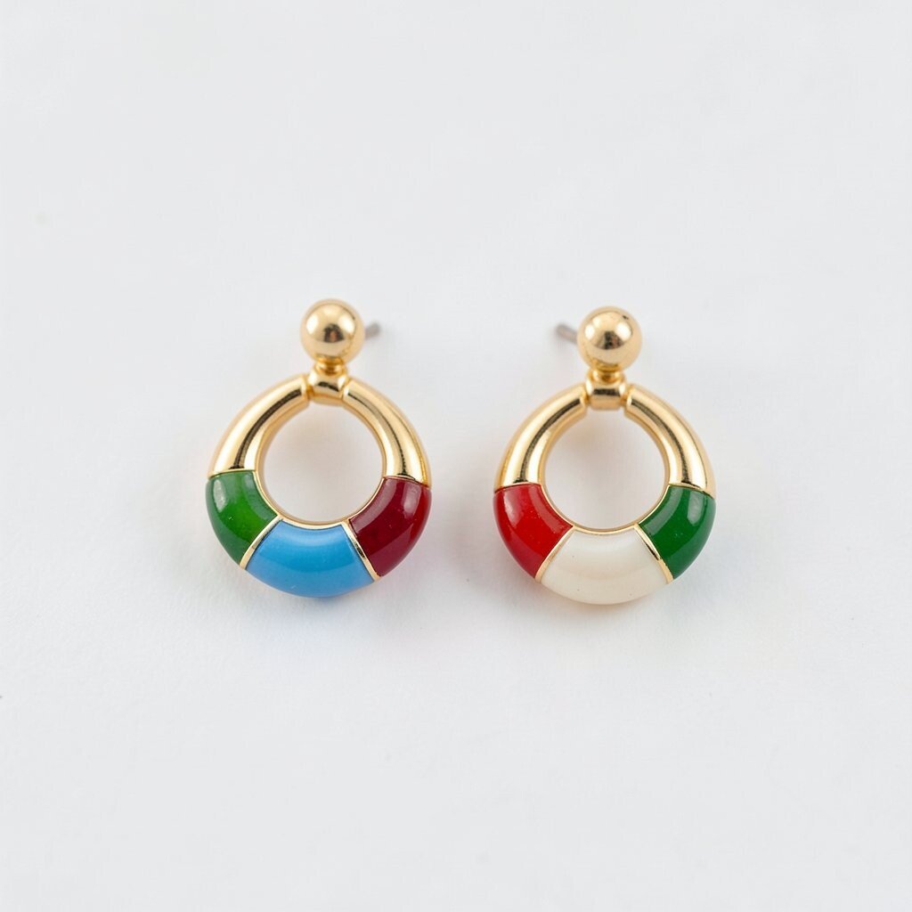 These earrings are perfect for those who love to experiment with colors. They can be worn alone or stacked with plain metal hoops.