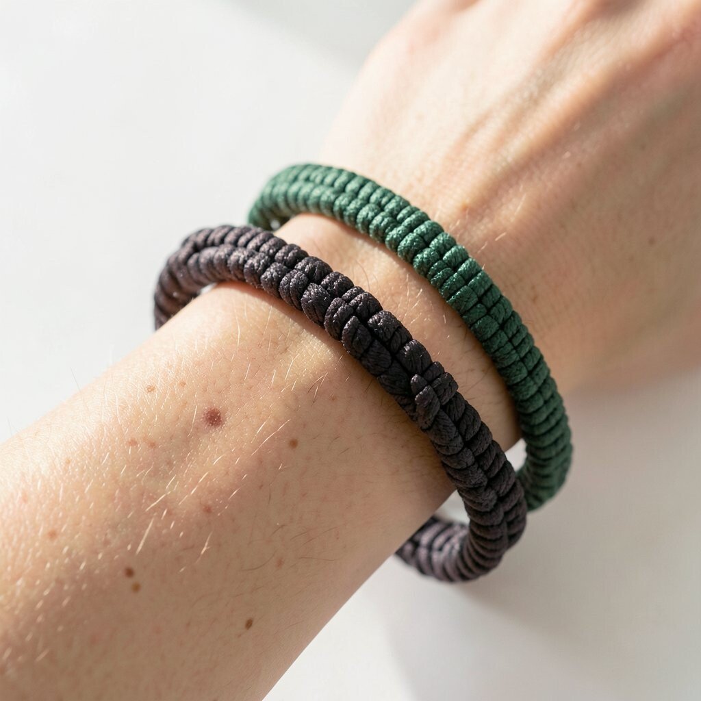 Nylon cord bracelets are both durable and hypoallergenic. They are available in various colors and can be customized.