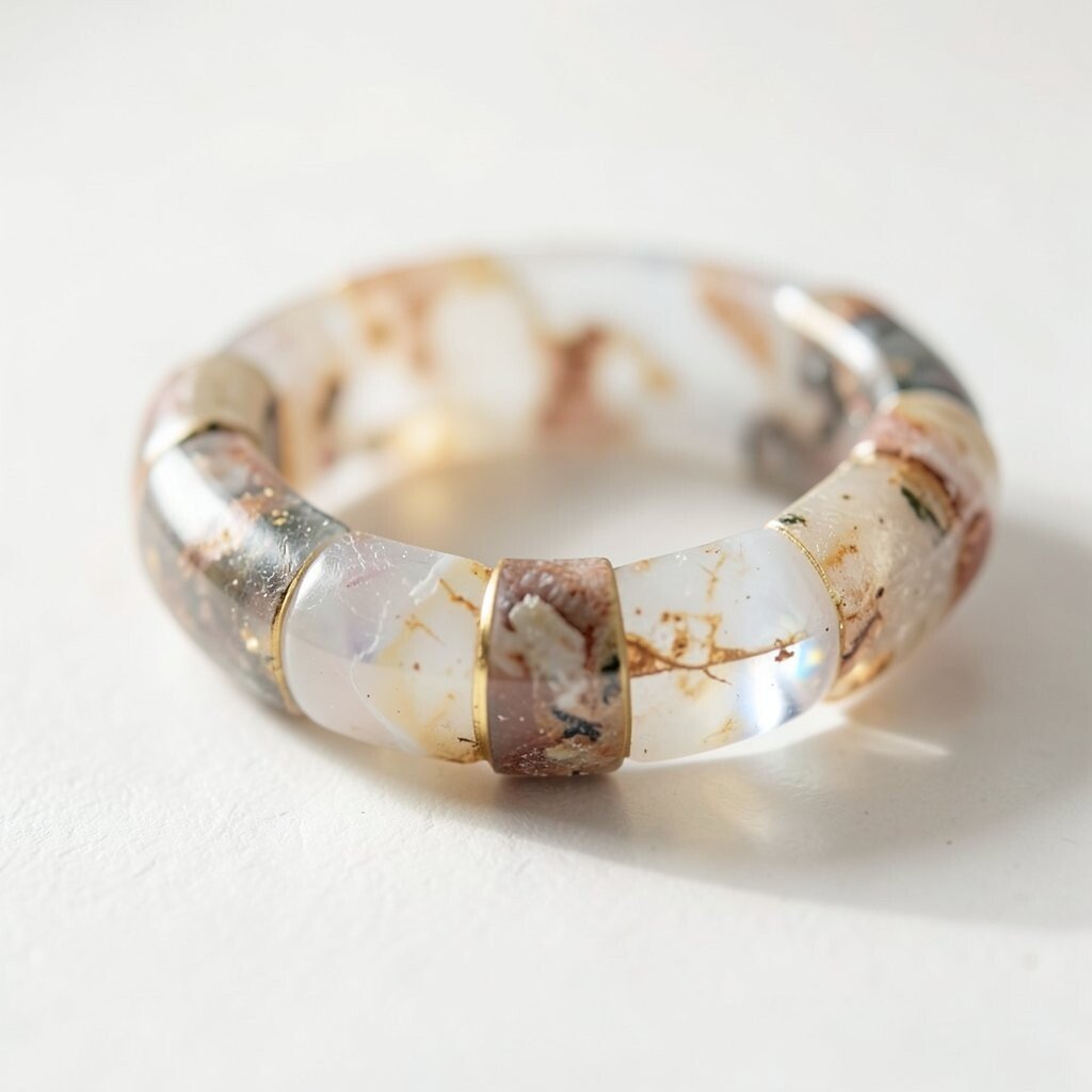 Resin bangles are lightweight and come in an array of colors. They are perfect for adding a playful touch to any outfit.