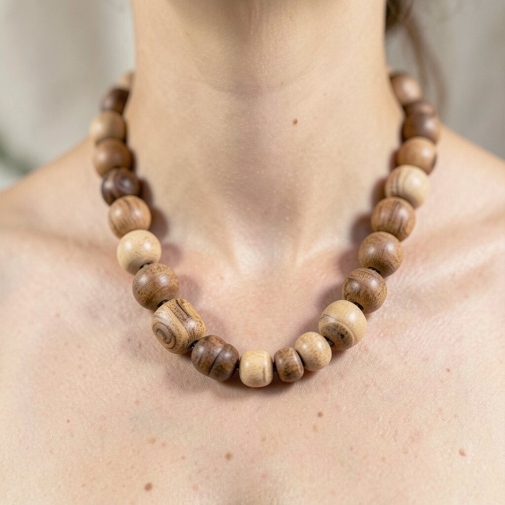 Wooden bead necklaces offer a natural, earthy look. They are perfect for those with skin sensitivities.