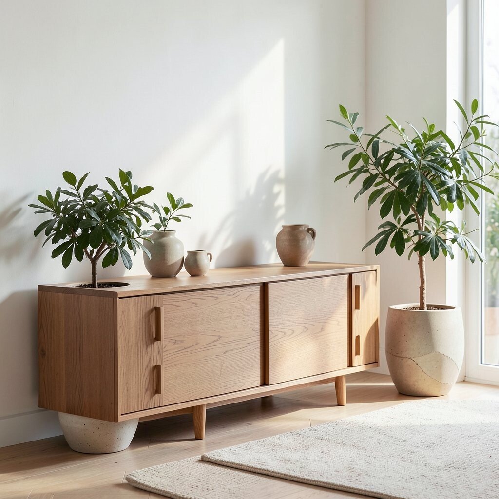 A minimalist sofa with clean lines and neutral colors can be the centerpiece of your living room. Choose one with a low profile and natural fabric for that Japandi charm.