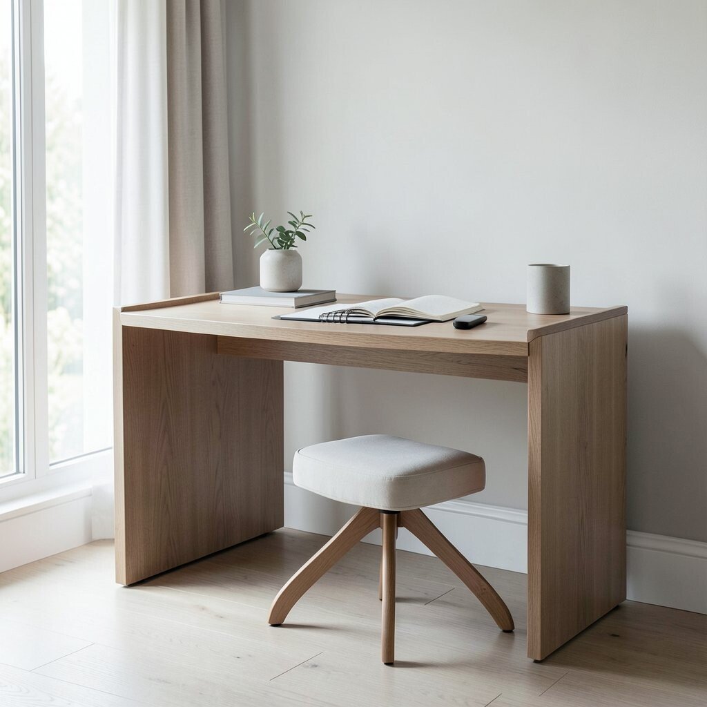 A compact writing desk suits small spaces perfectly. Look for one with a simple design and a few drawers for storing essentials.