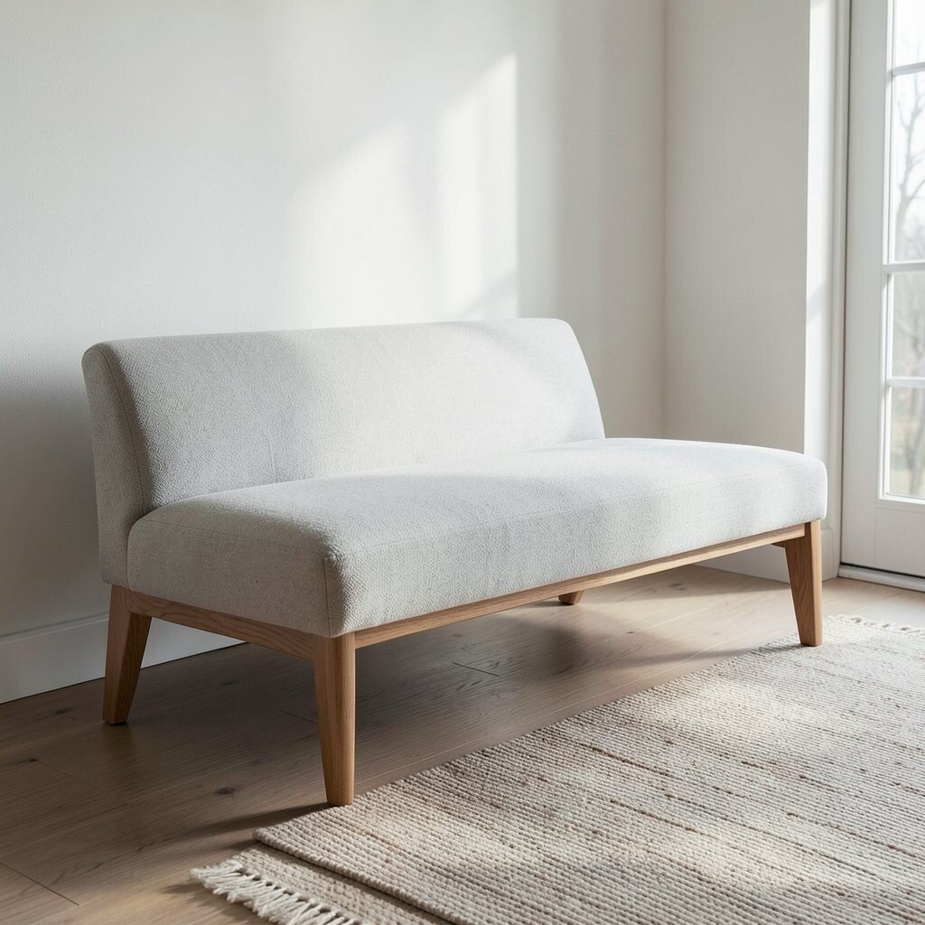 Choose one with a simple design and natural wood finish. Add cushions or a throw for extra comfort.